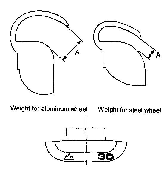 Weight for steel wheel: 1.8 - 2.0 mm (0.071 - 0.079 inch)