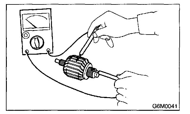 Using circuit tester, touch one probe to the commutator segment and the other to shaft. There should be no continuity. If there is a continuity, armature is grounded.