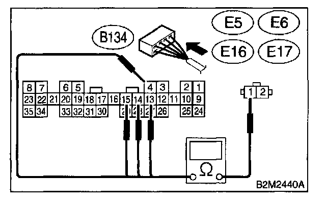 Connector & Terminal #1 (B134) No.4 - (E5) No.1 #2 (B134) No.13 - (E16) No.1 #3 (B134) No.14 - (E6) No.1 #4 (B134) No.15- (E17) No.1: