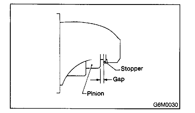 3. If pinion gap is outside specified range, remove or add number of adjustment washers used on the mounting surface of switch assembly until correct pinion gap is obtained.