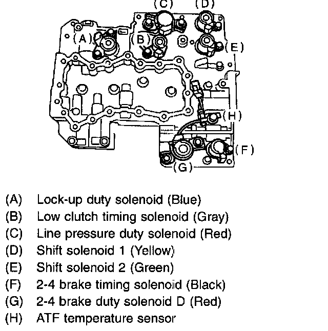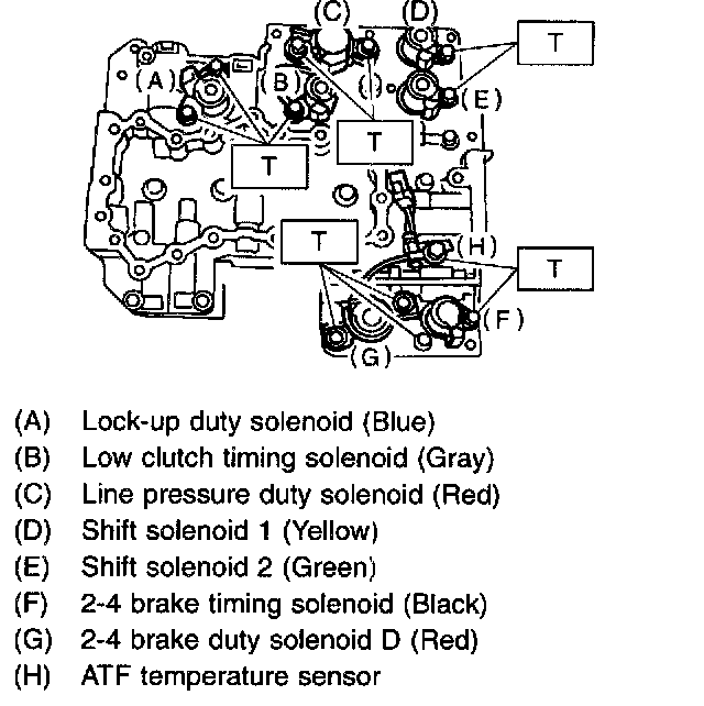 2) Remove the duty solenoid S, solenoids and sensor from the lower valve body.