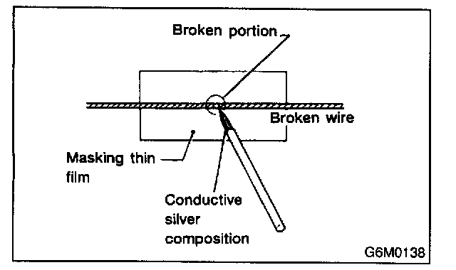 3. Place the slit on glass along the broken wire, and deposit conductive silver composition (DUPONT No.4817) on the broken portion.