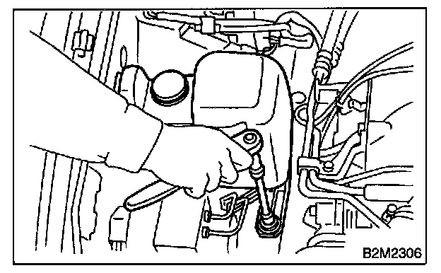4. Remove the two bolts which hold the washer tank, then take the tank away from the working area.