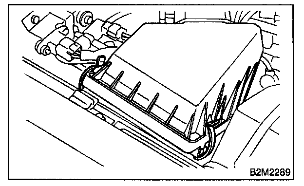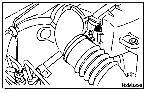 6. Loosen clamp which connects air intake duct to mass air flow sensor.