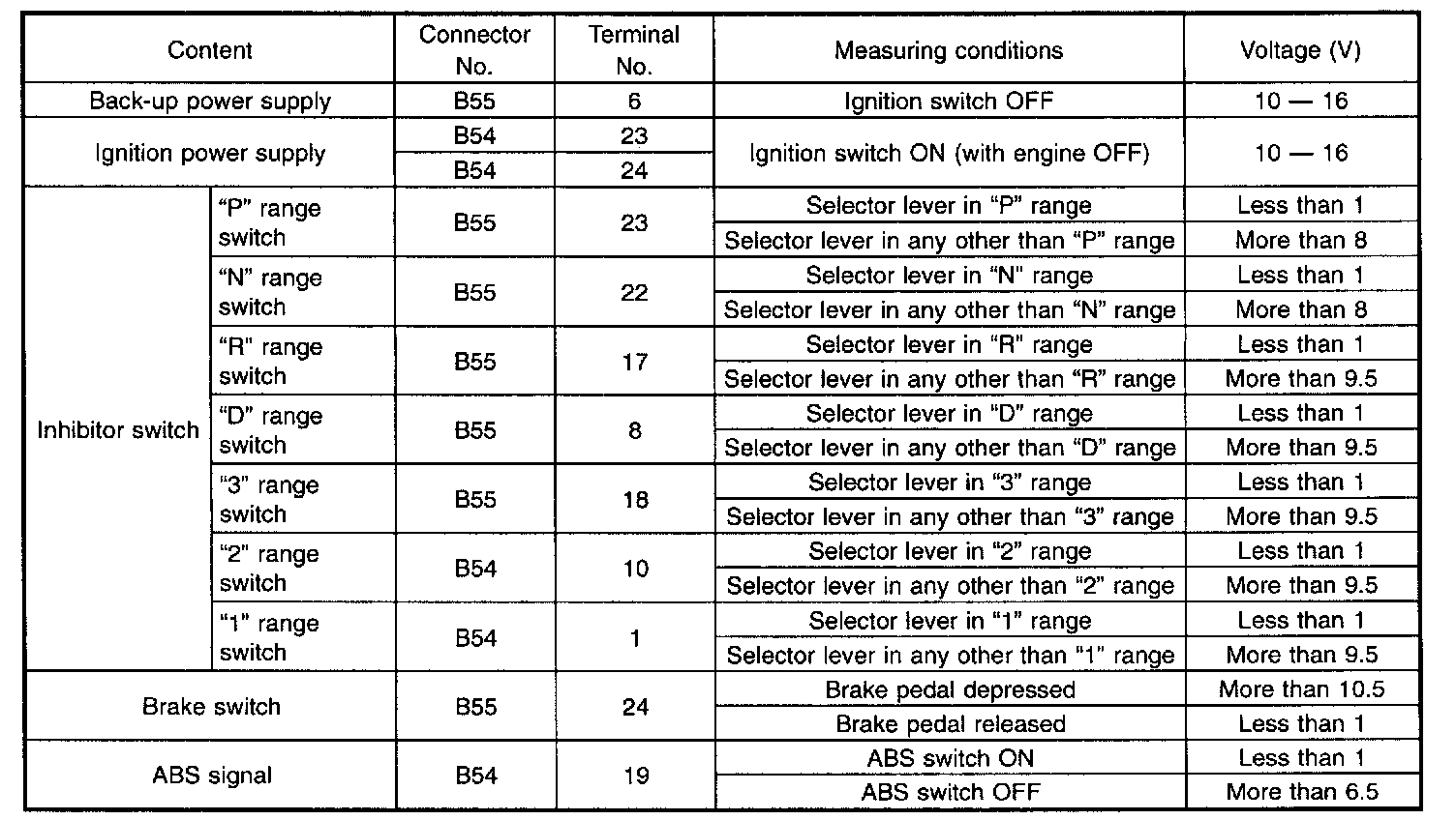 TRANSMISSION CONTROL MODULE I/O SIGNALS
