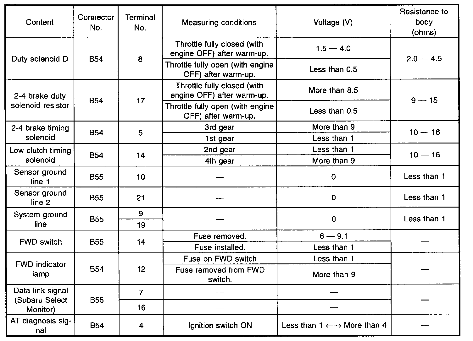 Pinout Values and Diagnostic Parameters