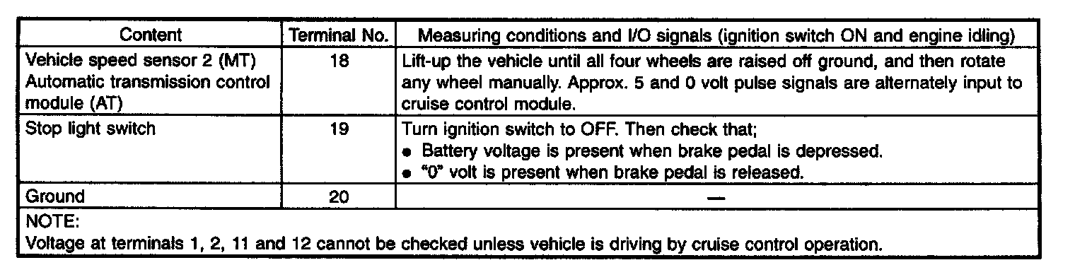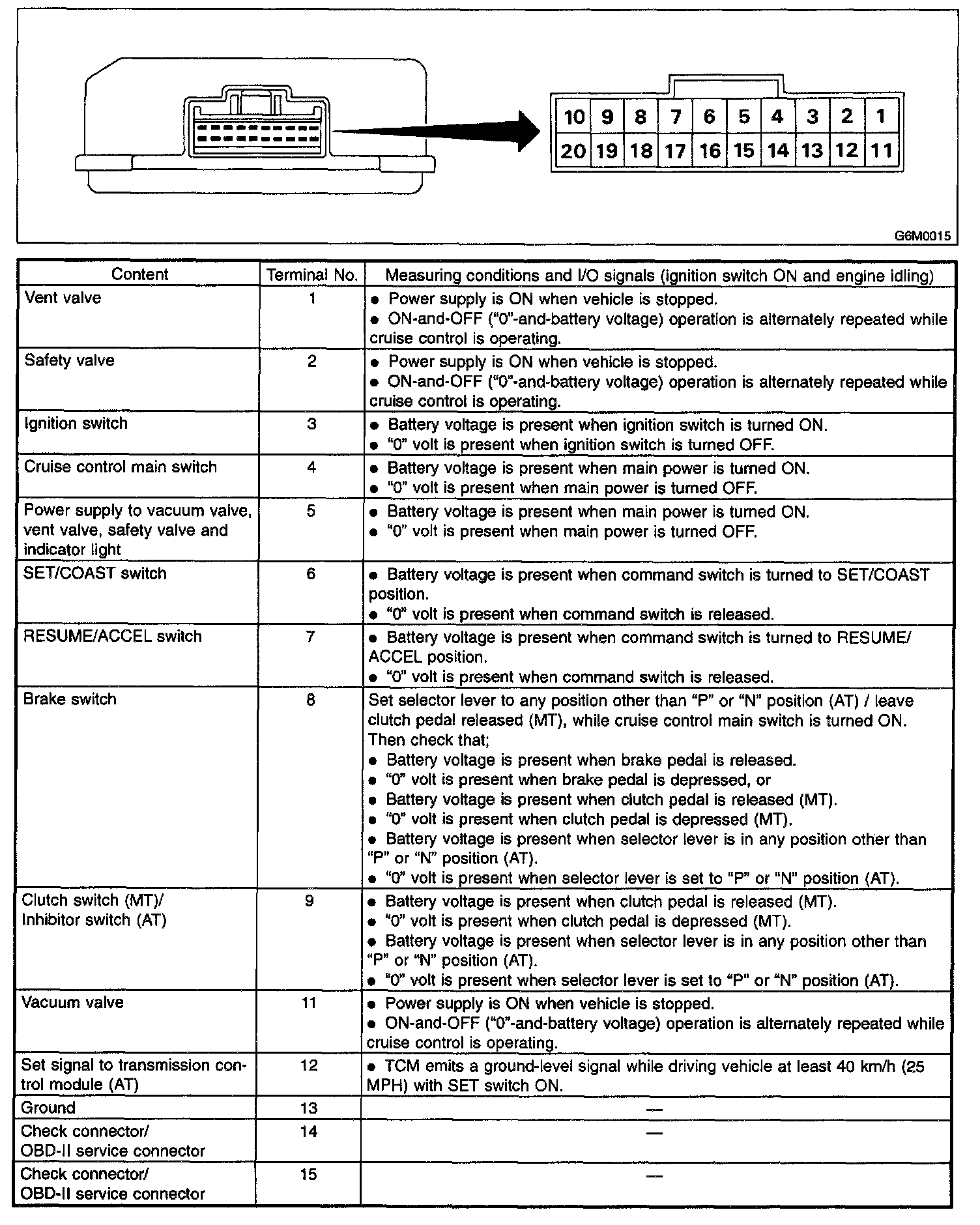 Control Module Pinout Values