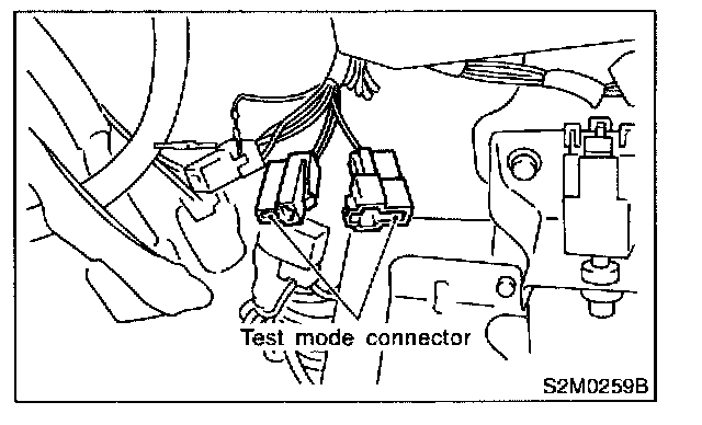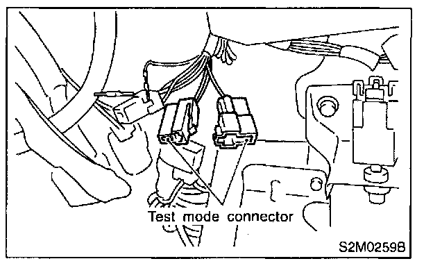 4. Connect test mode connector at the lower portion of instrument panel (on the driver's side), to the side of the center console box.