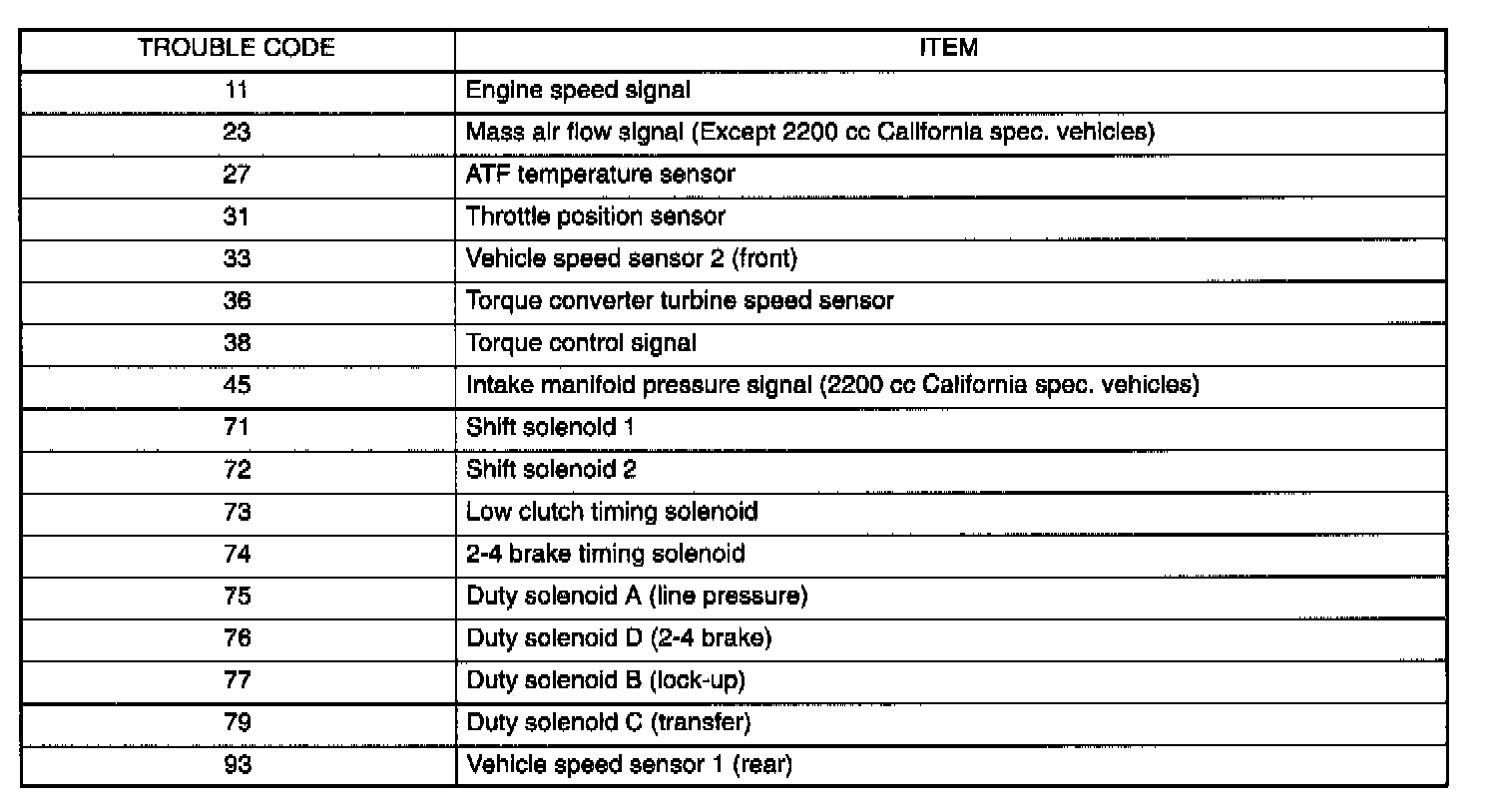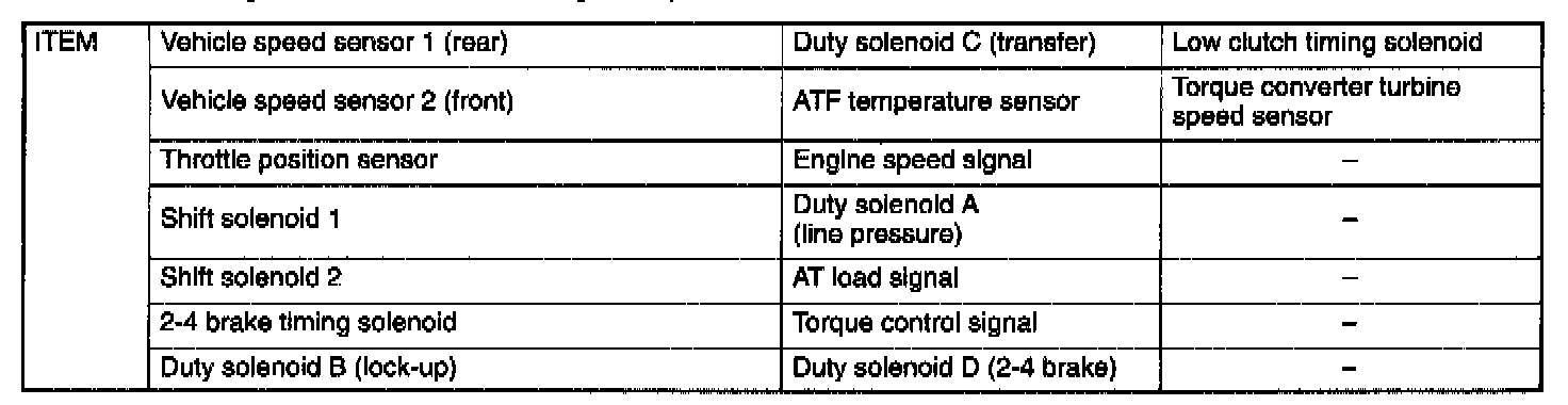 The on-board diagnostics system is capable of detecting any trouble which has occurred in any of the following input and output signal systems.