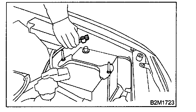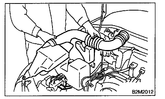3. Remove bolt which installs air intake duct (B) on body.