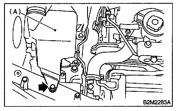 2. Remove bolt which installs air intake duct (A) on the front side of body.