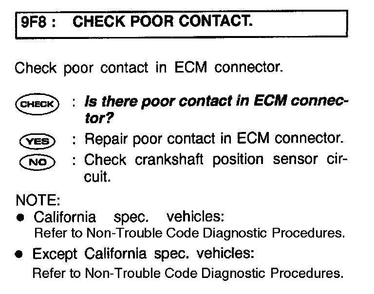 CAUTION: After repair or replacement of faulty parts, conduct CLEAR MEMORY MODE and INSPECTION MODE . Refer TO How To Clear Diagnostic Trouble Codes.