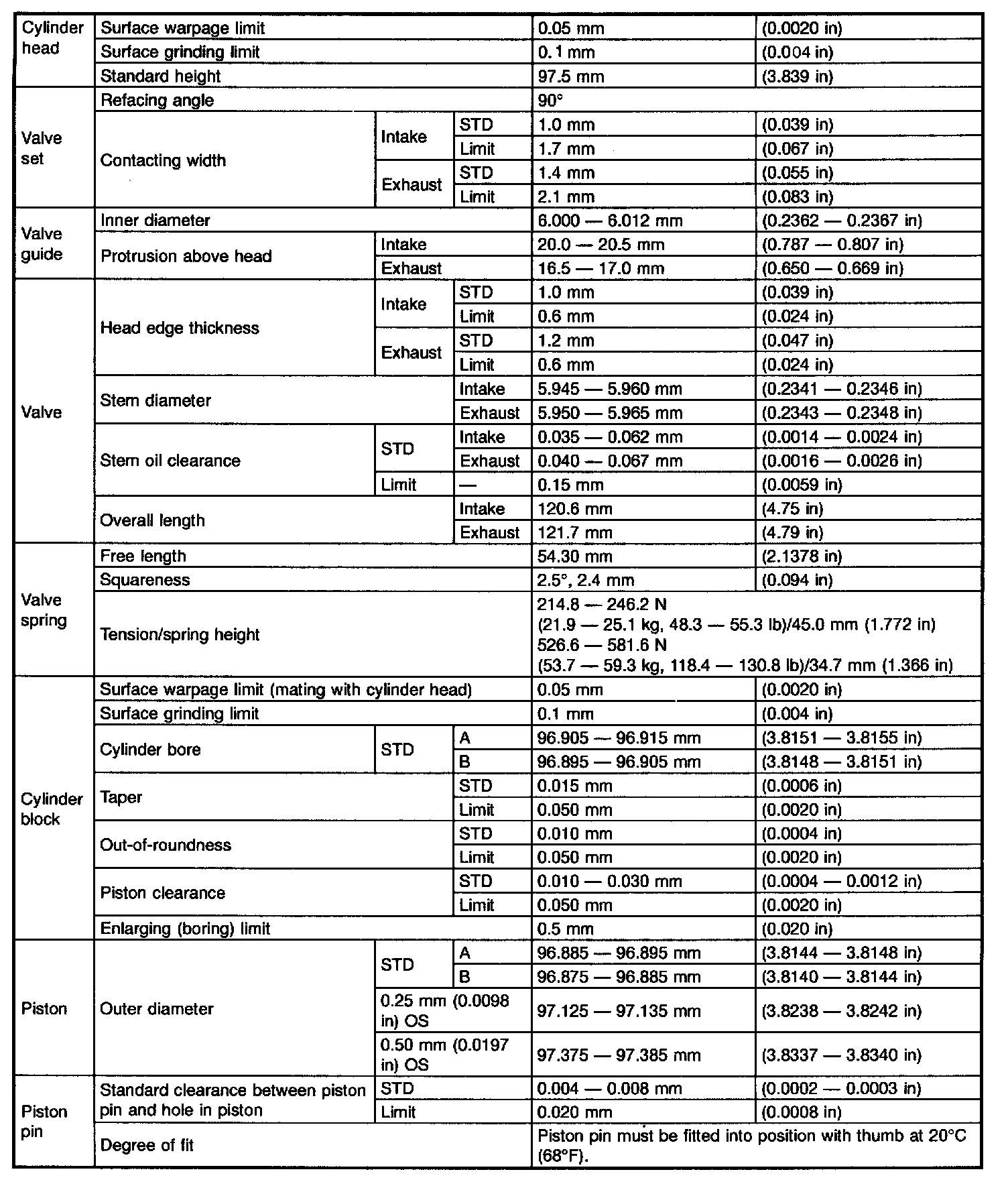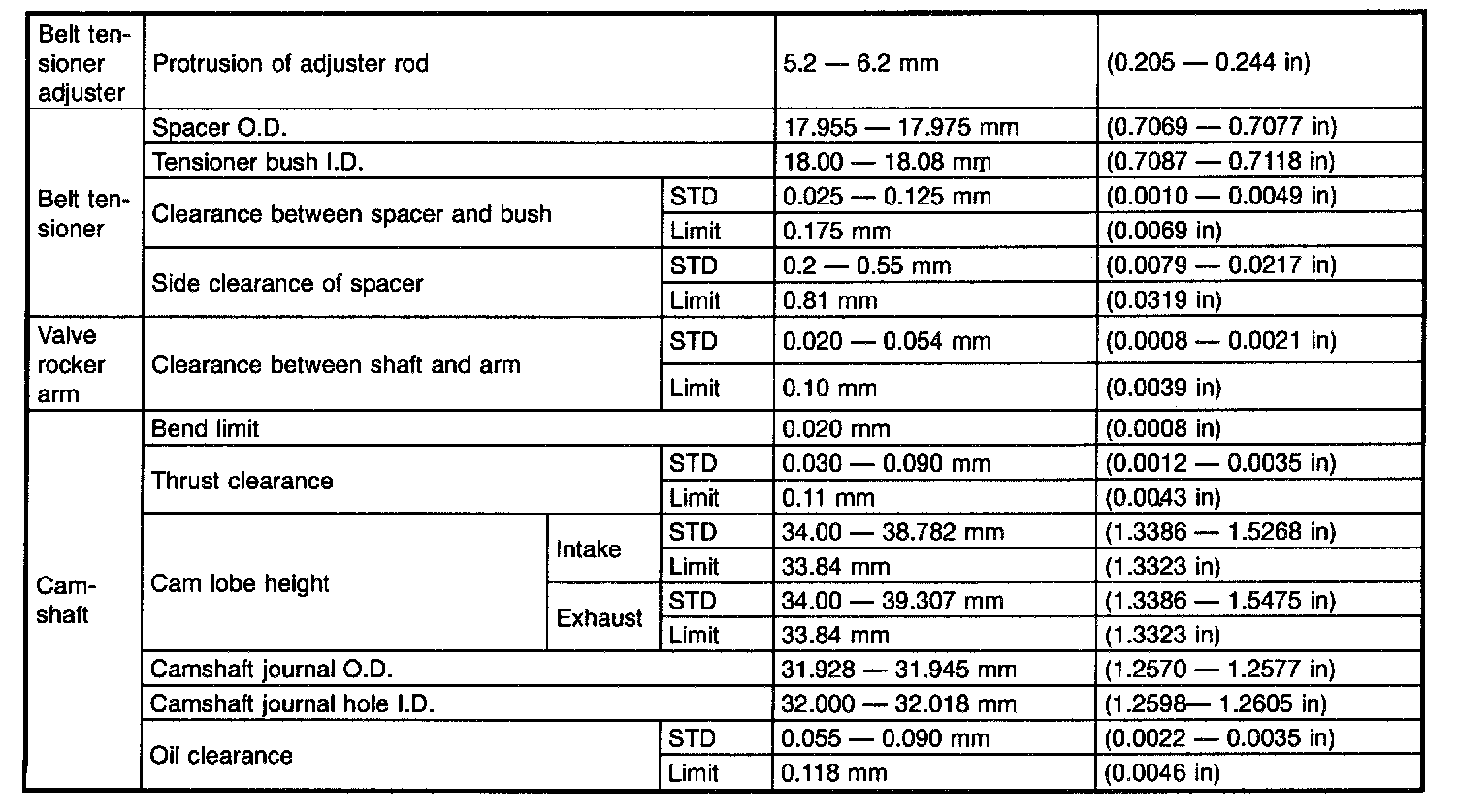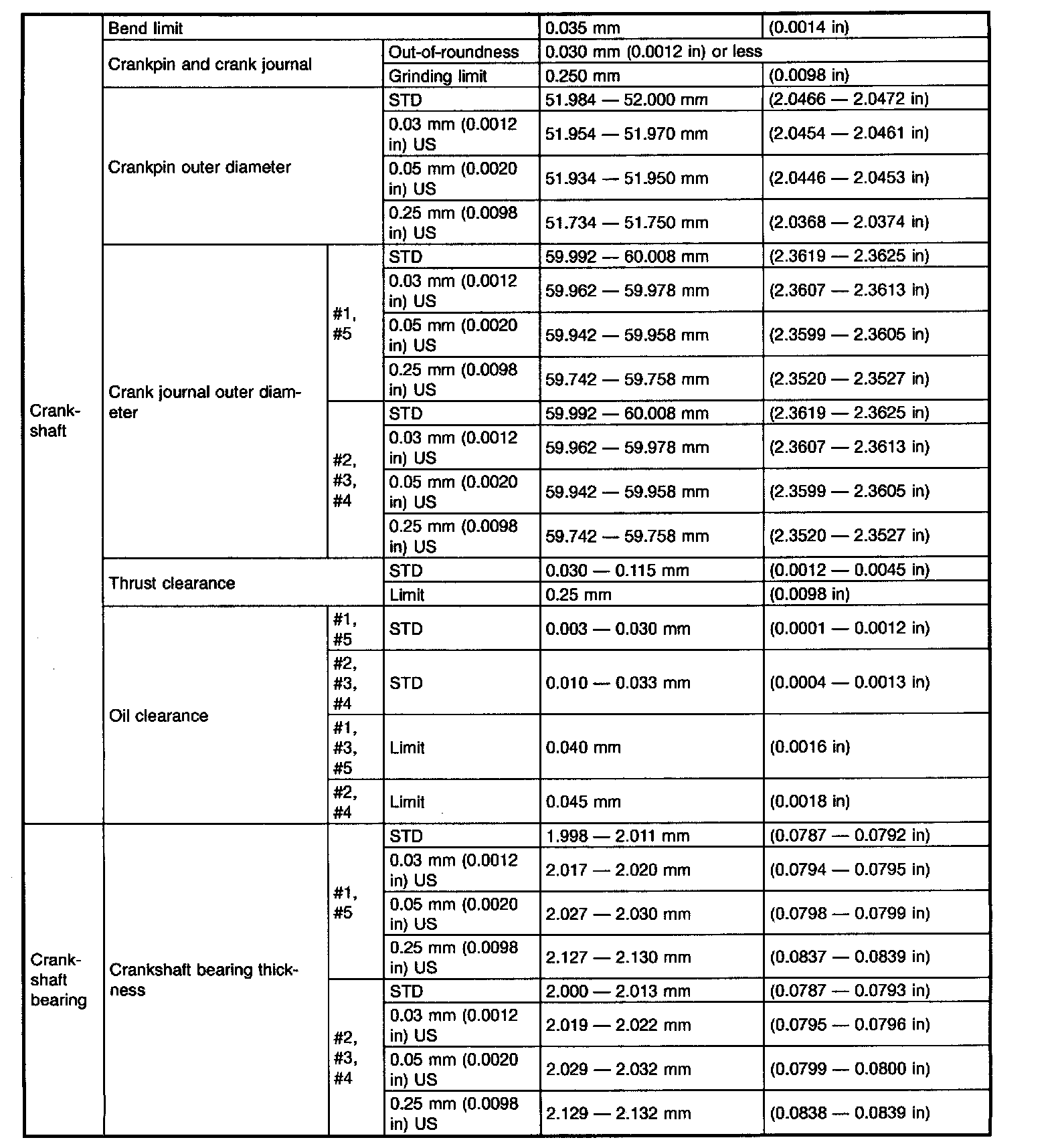 STD: Standard, I.D.: Inner Diameter, O.D.: Outer Diameter, OS: Oversize, US: Undersize
