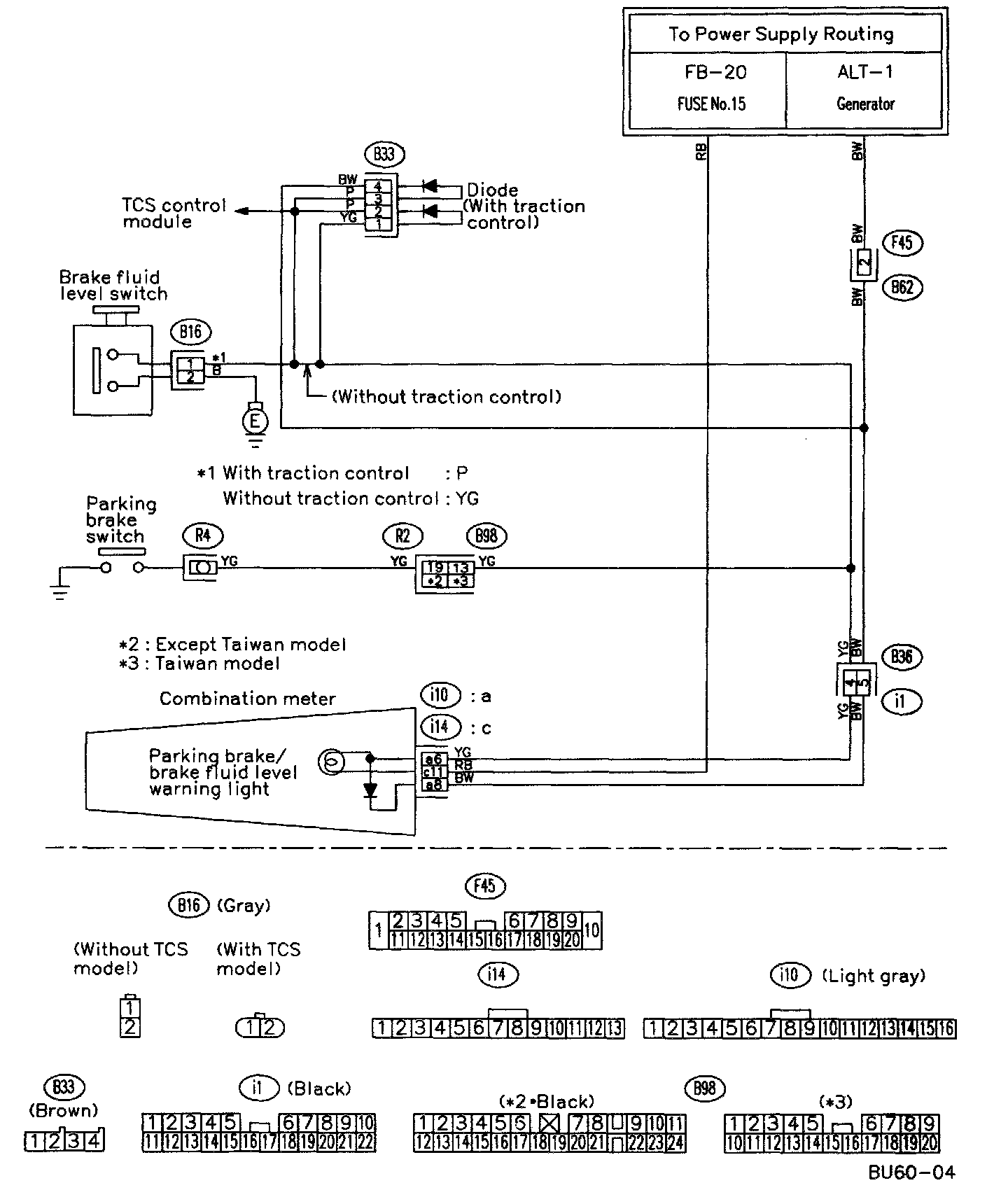 Parking Brake And Brake Fluid Level Warning System (LHD Model) Circuit: