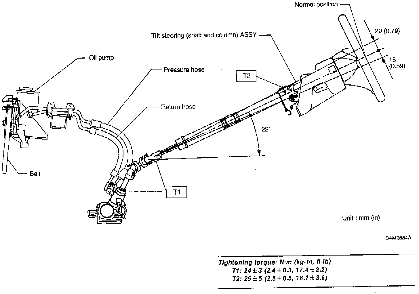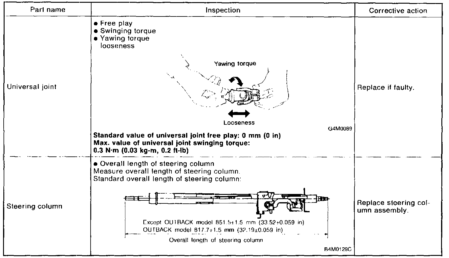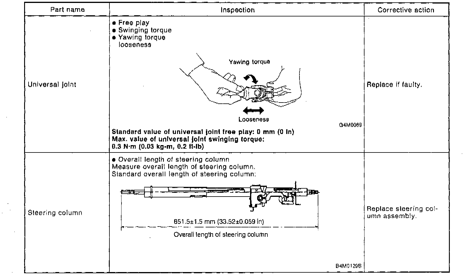 - Excessively large tightening torque of universal joint bolts may lead to heavy steering wheel operation. Standard clearance between gearbox to DOJ: Over 15 mm (0.59 inch)