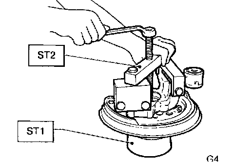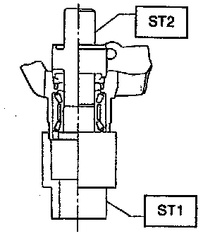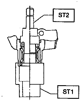 5) Using ST1 and ST2, remove bearing by pressing inner race.