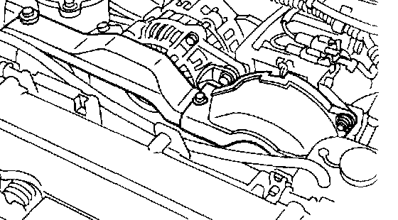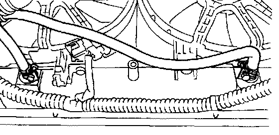 7. Attach ATF cooler hose to a clip under the radiator main fan shroud.