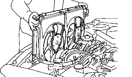 A. REMOVALWARNING: The radiator is pressurized. Wait until engine cools down before working on the radiator.