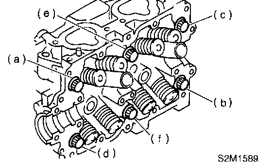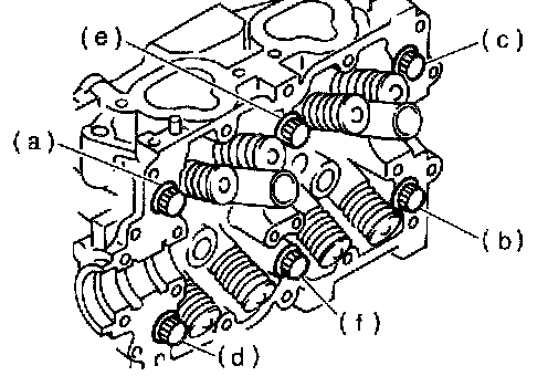 CAUTION: Leave bolts (a) and (c) engaged by three or four threads to prevent cylinder head from failing.