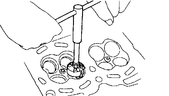 2. Put a small amount of grinding compound on the seat surface and lap the valve and seat surface. Install a new intake valve oil seal after lapping.