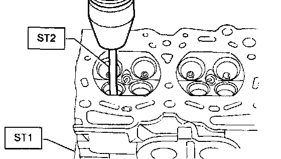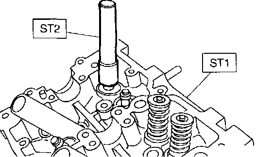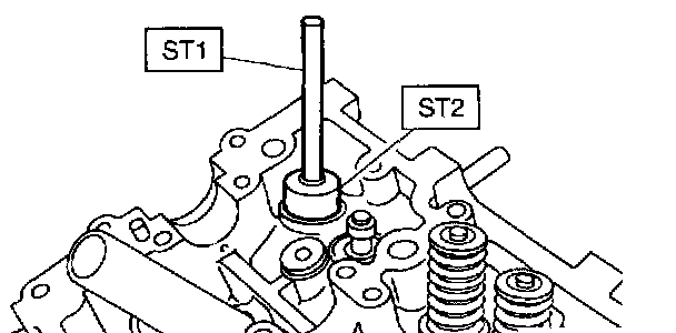 b. Insert ST2 into valve guide and press it down to remove valve guide.