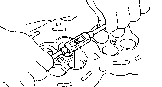g. Ream the inside of valve guide with ST Gently rotate the reamer clockwise while pressing it lightly into valve guide, and return it also rotating clockwise. After reaming, clean valve guide to remove chips.