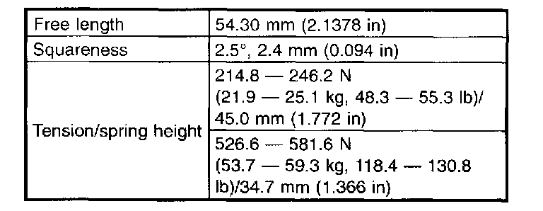 1. Check valve springs for damage, free length, and tension. Replace valve spring if it is not to the specifications presented below.