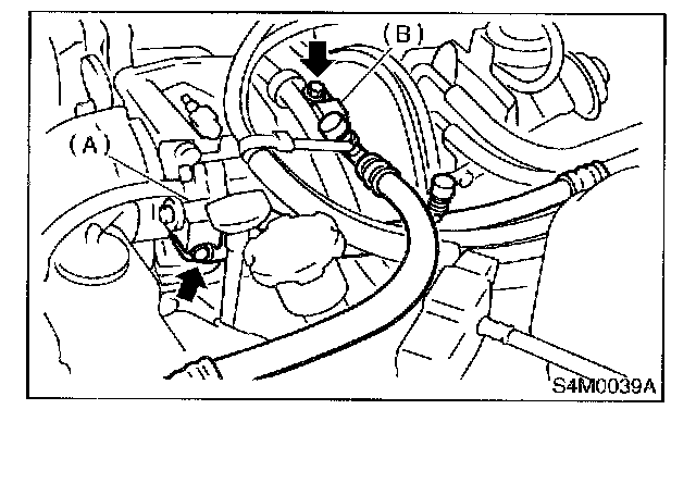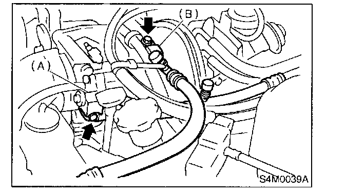 3. Remove low-pressure hose (A) (Flexible hose Ps) and high-pressure hose (B) (Flexible hose Pd).