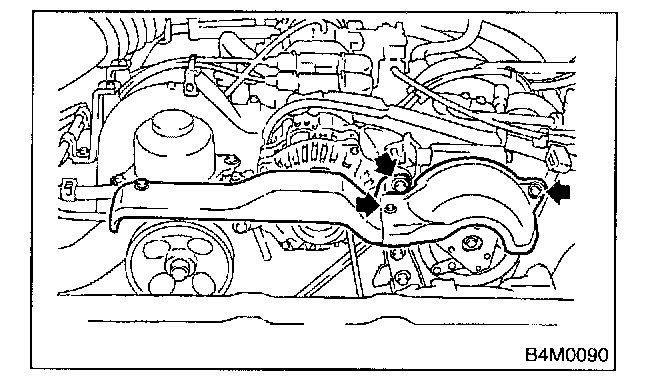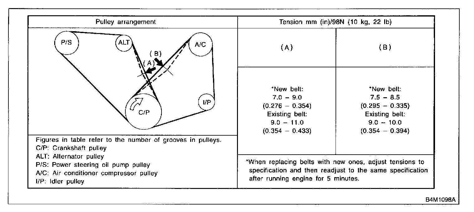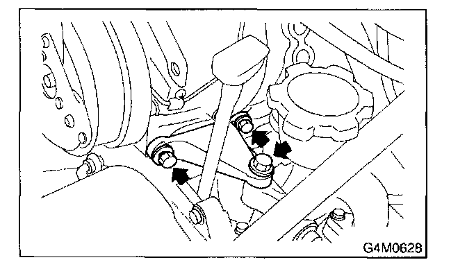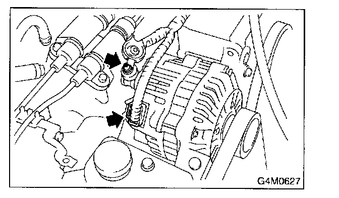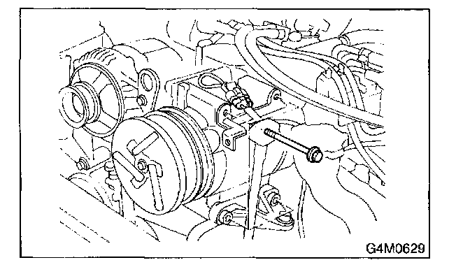 6. Check drive belt tension and adjust it if necessary by changing alternator position and/or idler pulley position.