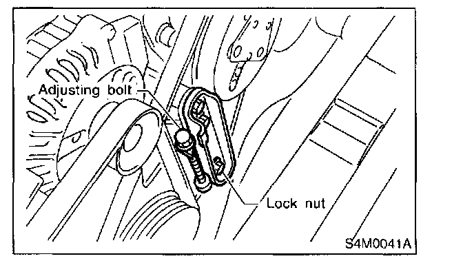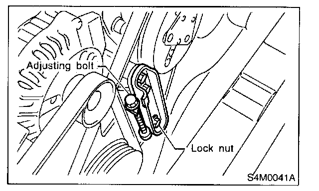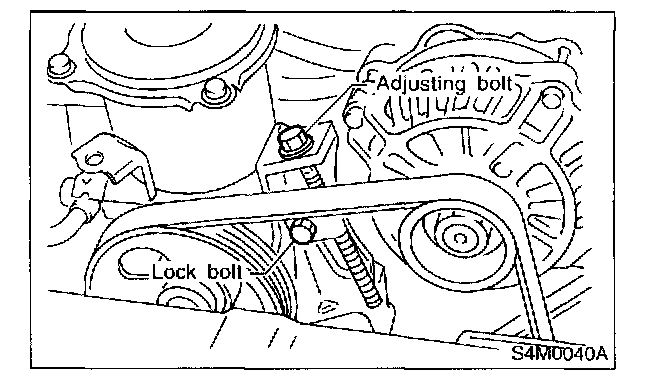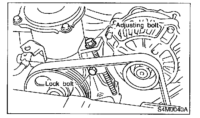 After adjusting V-belt tension, tighten alternator bracket lock bolt securely.