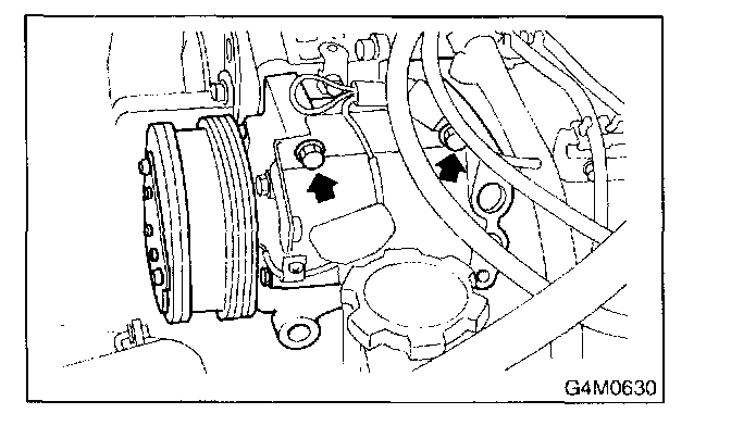 - After completing the compressor installation and testing the system operation, check and adjust the tension of both V-belts again.