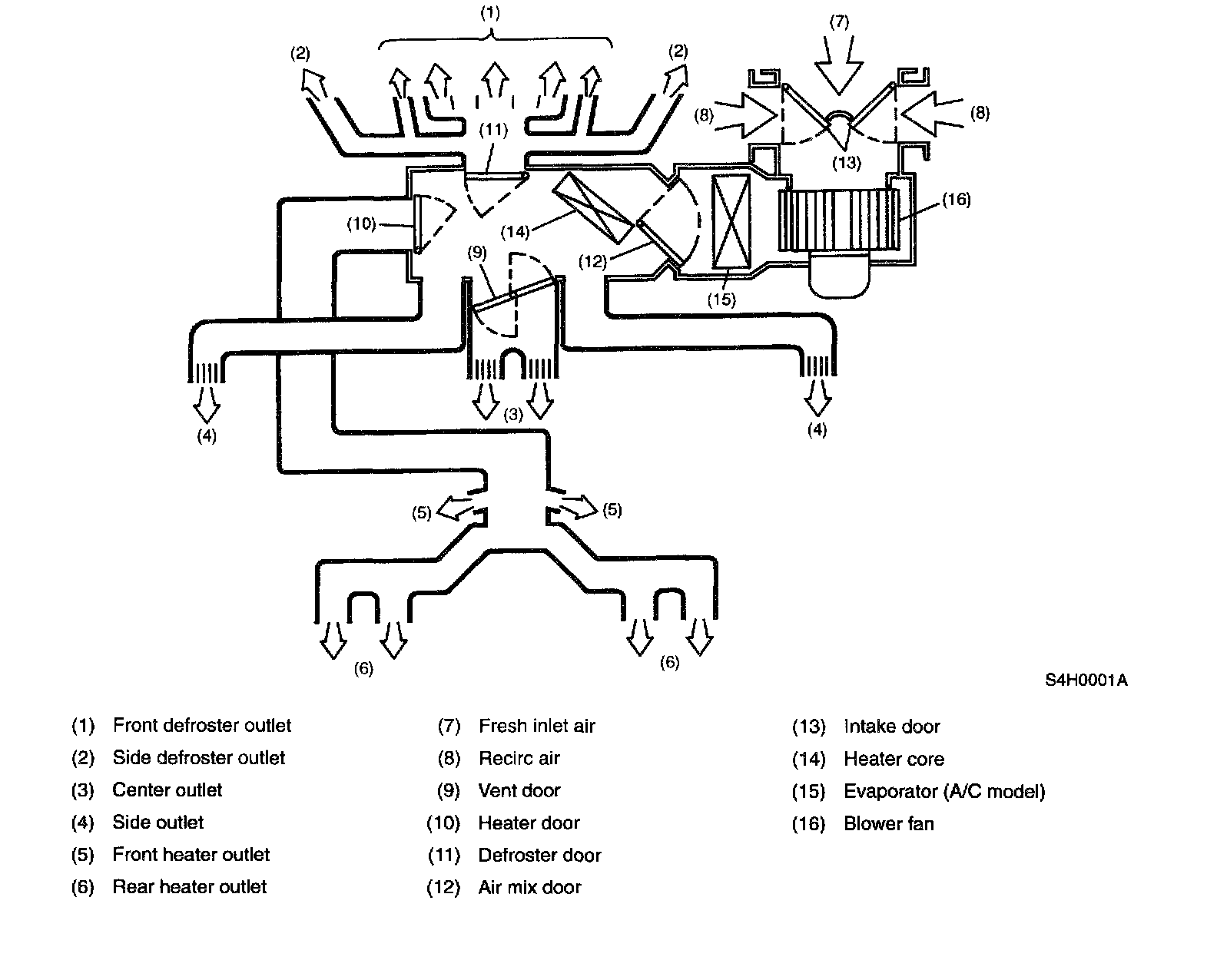 All models are equipped with the front side window defroster, and all models are further equipped with the rear heater duct.