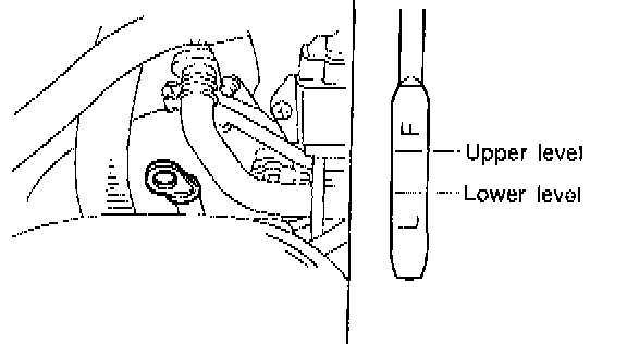 2) Make sure the vehicle is level. After selecting all positions (P, R, N, D, 3, 2, 1), set the selector leveler in "P" range. Measure fluid level with the engine idling.