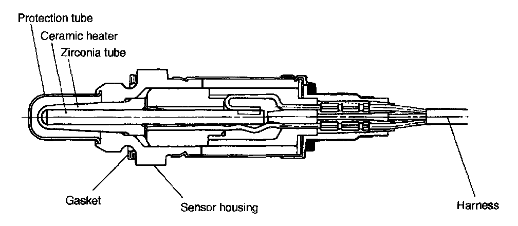 - The difference in oxygen concentration changes greatly in the vicinity of the optimum air-fuel ratio, and hence the change in the electromotive force is also large. By inputting this information into the ECM, the air-fuel ratio of the supplied mixture can be determined easily. The oxygen sensor does not generate much electromotive force when the temperature is low. The characteristics of the electromotive force stabilize at temperature of approximately 300 to 400°C (572 to 752°F).