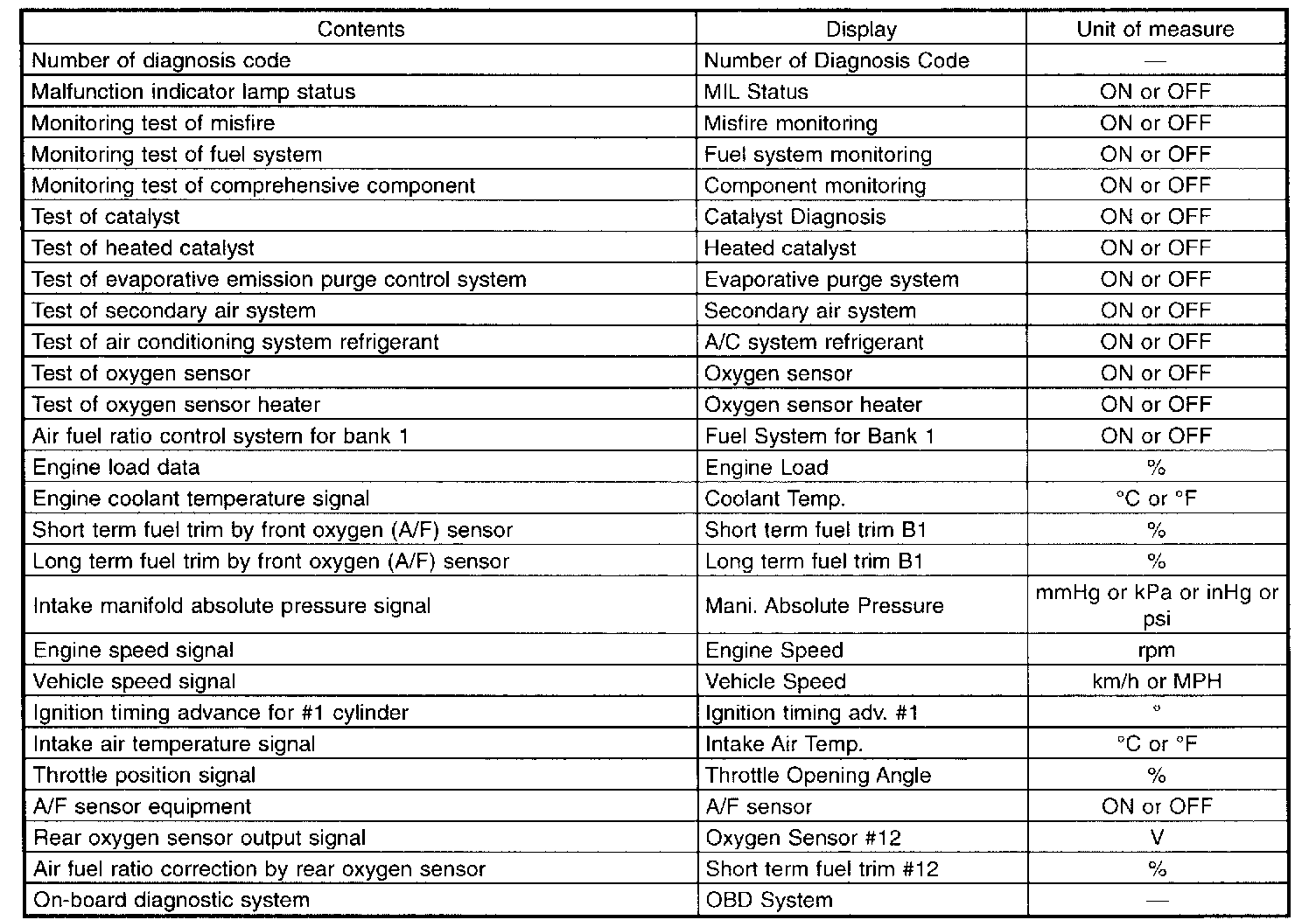 Read Current Data Shown on Display For Engine (OBD Mode)