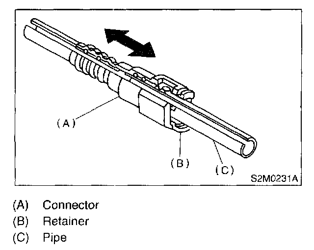 2. Connect fuel delivery hose to pipe in engine compartment with an overlap of 20 to 25 mm (0.79 to 0.98 in).