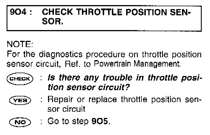 9O4 CHECK THROTTLE POSITION SENSOR.