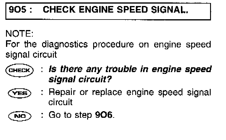 9O5 CHECK ENGINE SPEED SIGNAL.