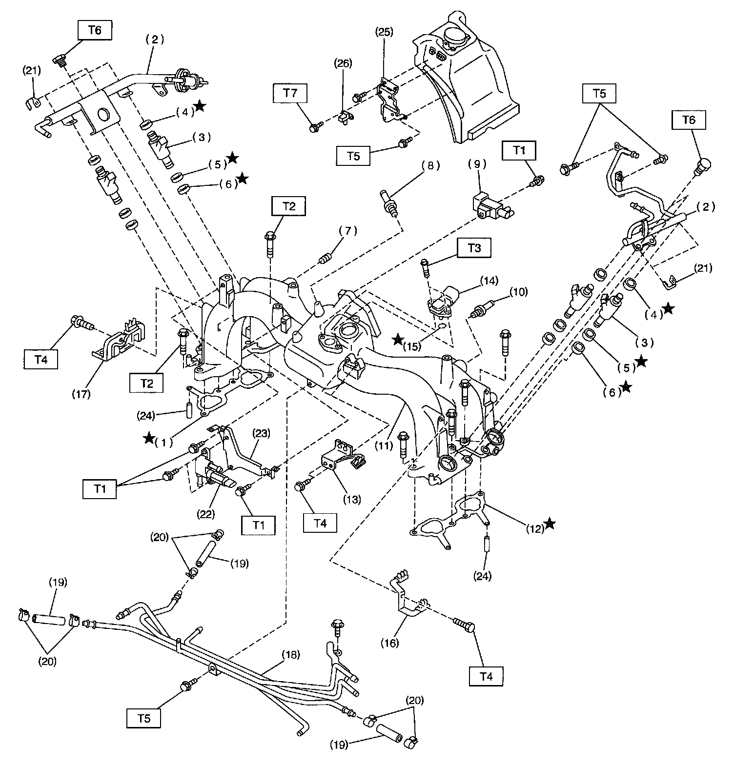 T2: 25 ± 2 (2.5 ± 0.2, 18.1 ± 1.4)
