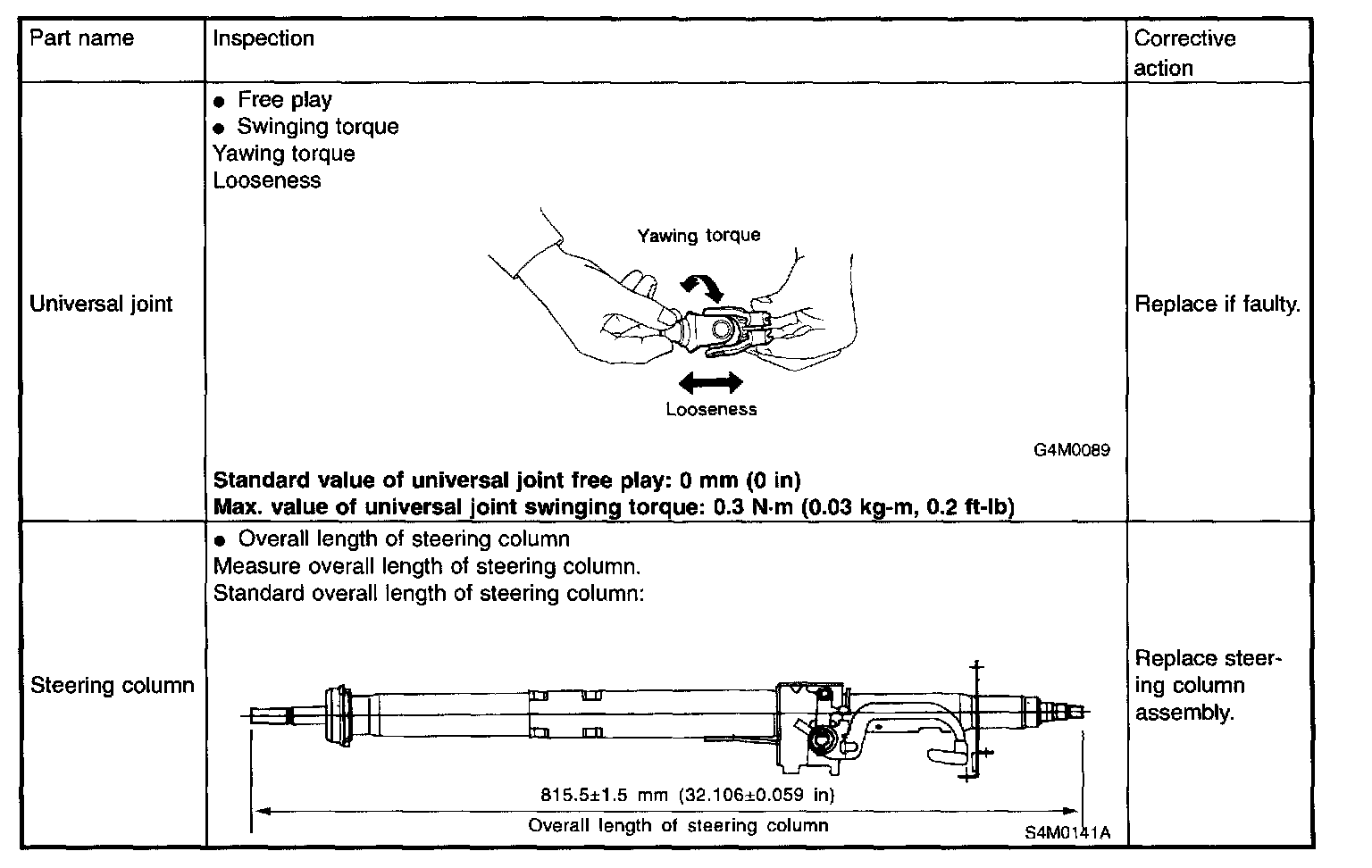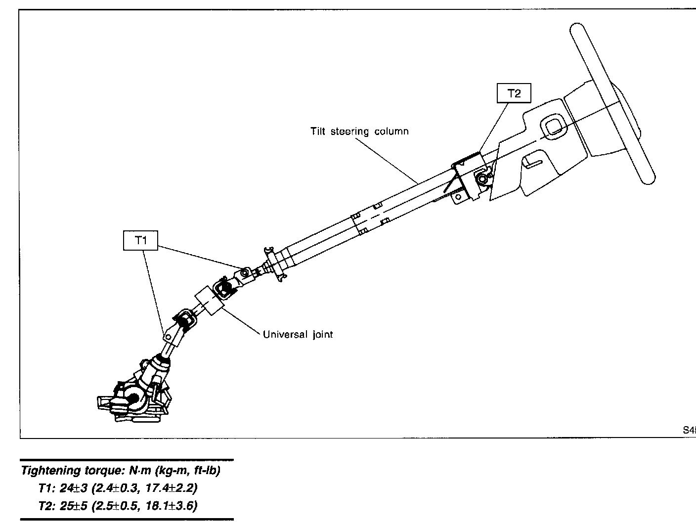 - Excessively large tightening torque of universal joint bolts may lead to heavy steering wheel operation.