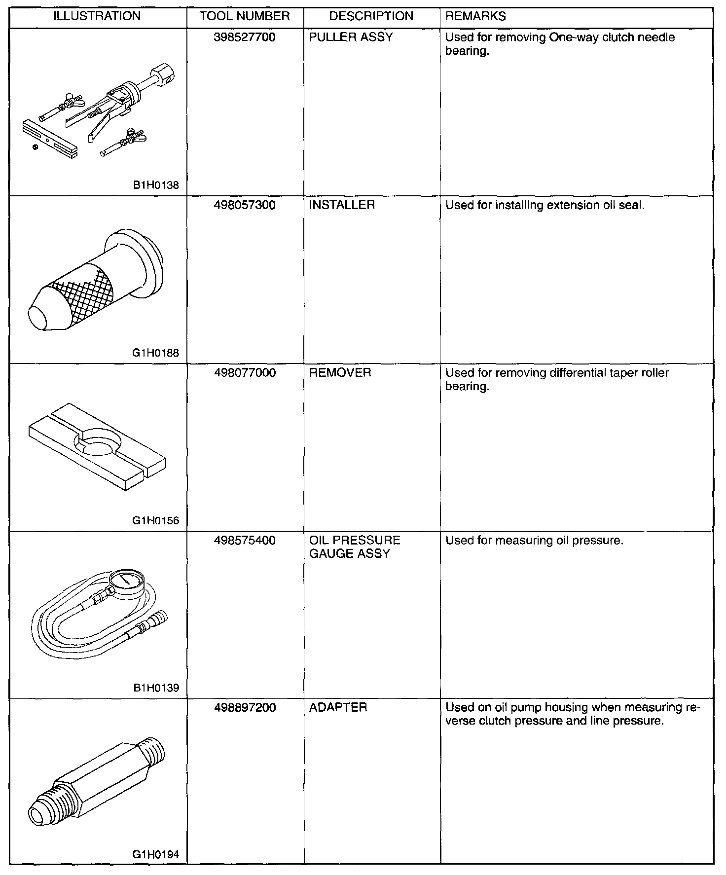 Automatic Transmission/Transaxle: Tools and Equipment