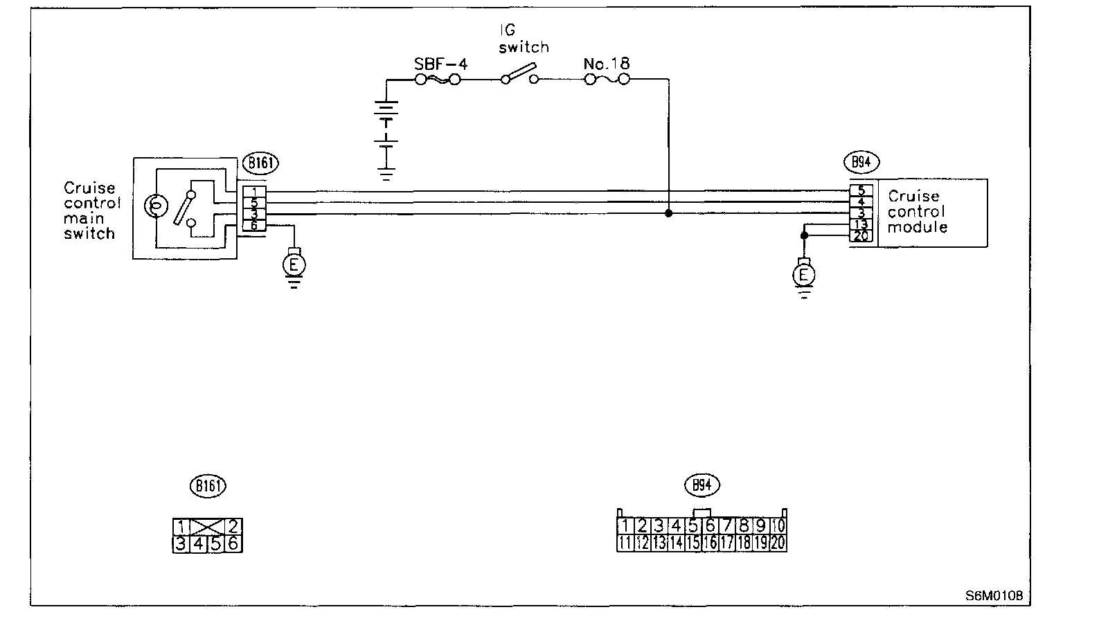 NOTE: Depress cruise control main switch with fingers while measuring voltage between (B161) No.5 and chassis ground.