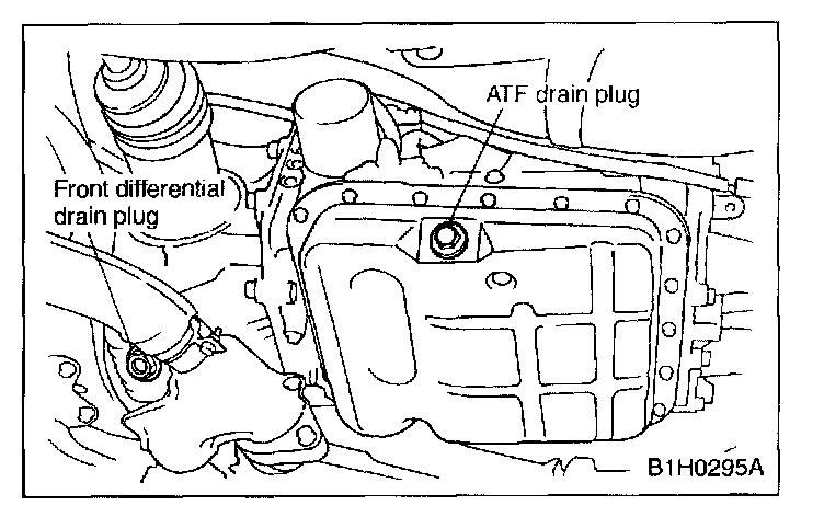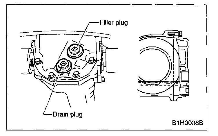 1. Drain differential gear oil by removing drain plug after allowing the engine to cool for 3 to 4 hours.