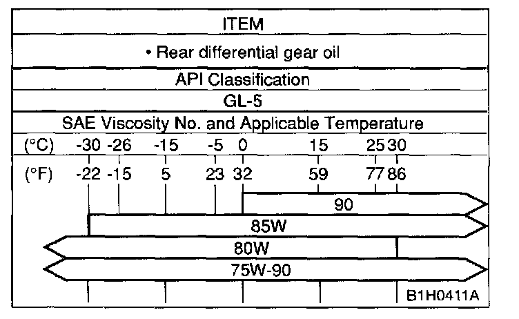 Differential gear oil capacity: 1.1 - 1.3 l (1.2 - 1.4 US qt, 1.0 - 1.1 Imp qt)
