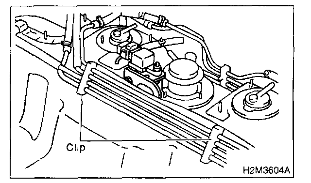 6. Move clip, and disconnect pressure hose from fuel tank.