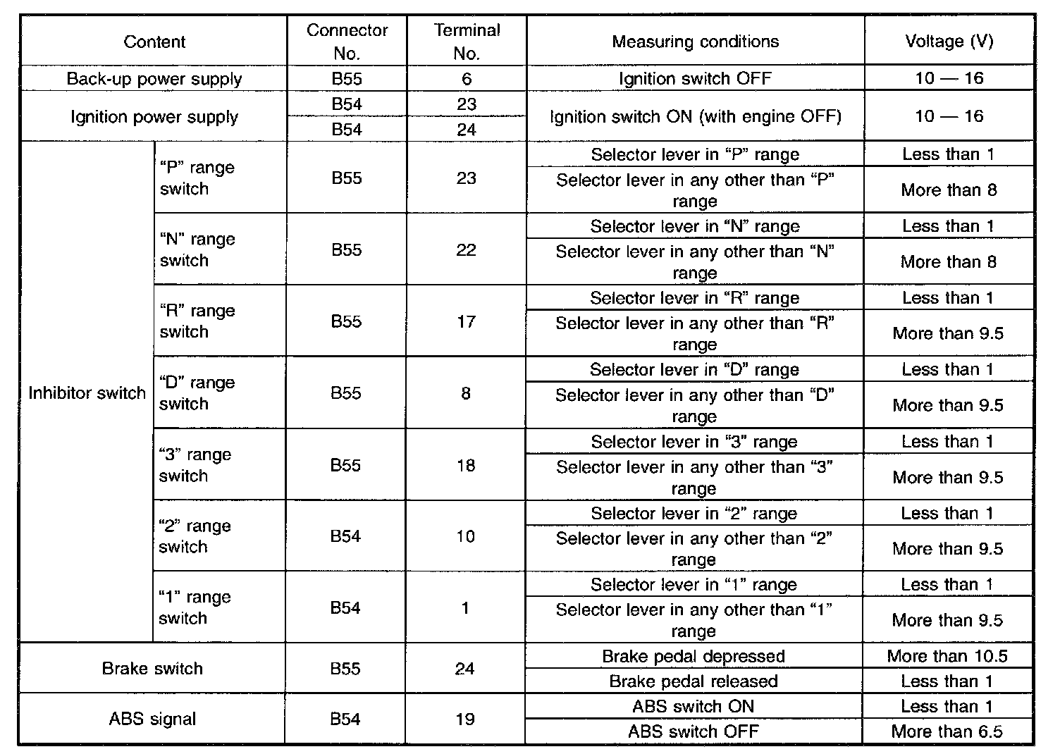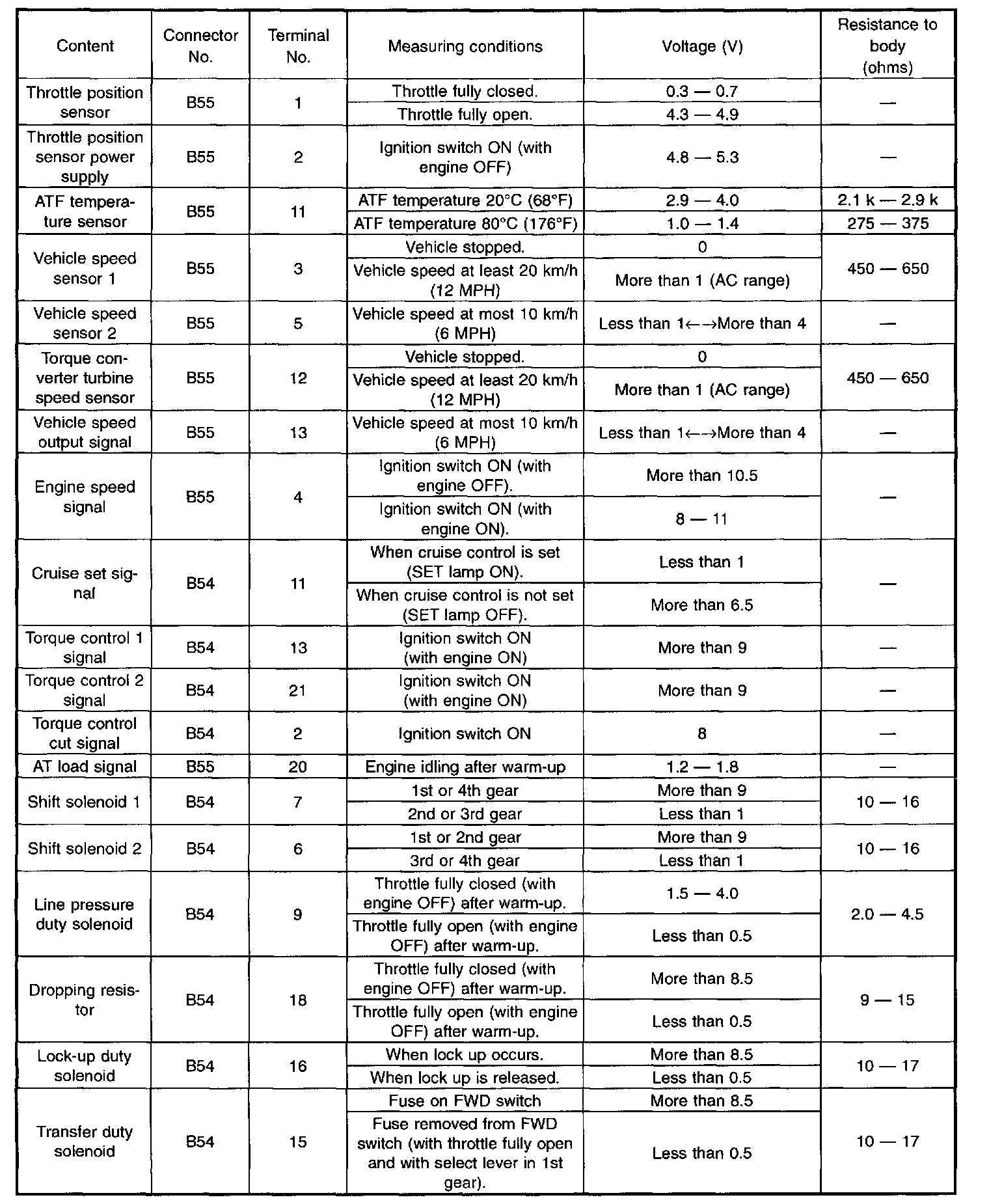 Pinout Values and Diagnostic Parameters