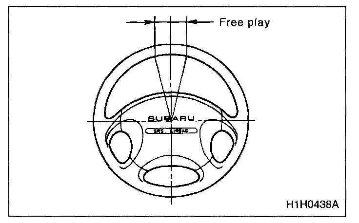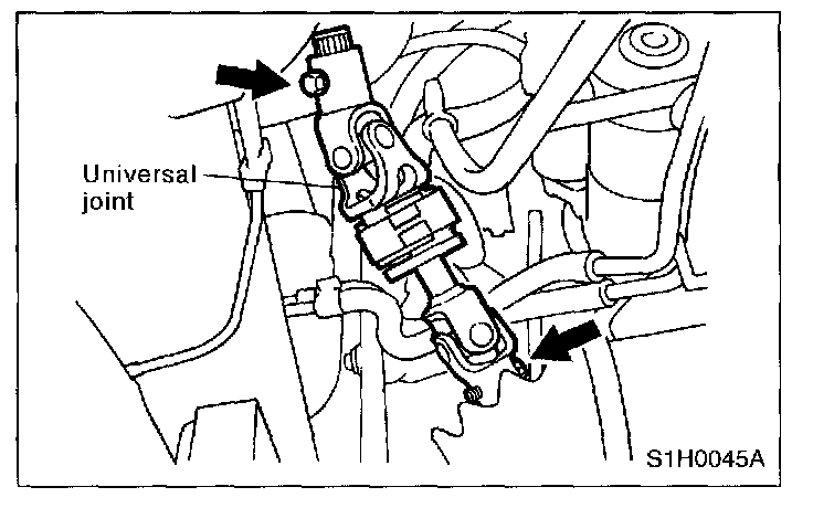 1. When steering wheel free play is excessive, disconnect universal joint of steering shaft and check it for any play and yawing torque (at the point of the crossing direction). Also inspect for any damage to sealing or worn serrations. If the joint is loose, retighten the mounting bolts to the specified torque.