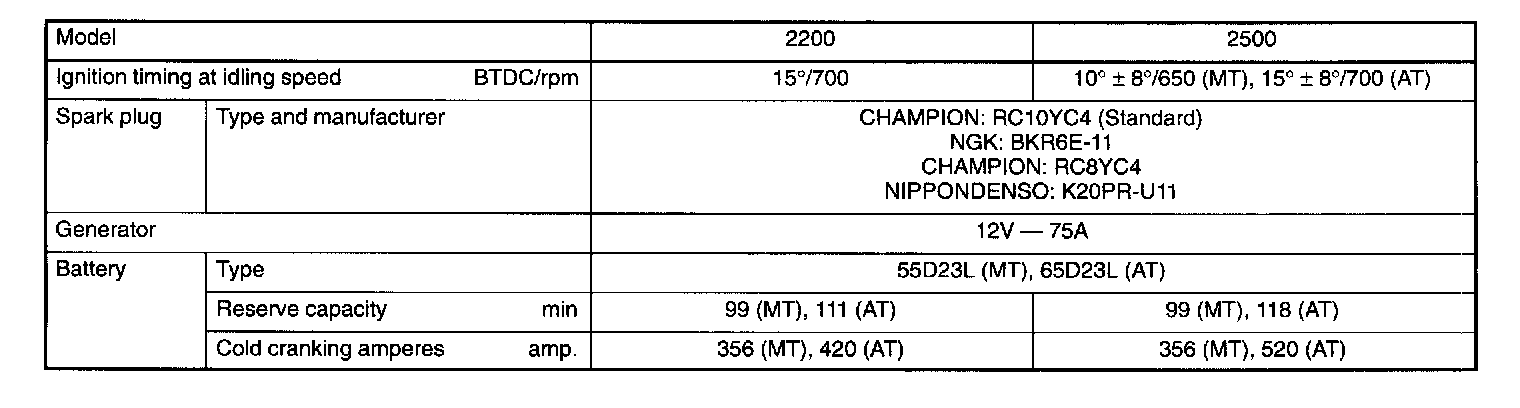 Starting and Charging: Specifications