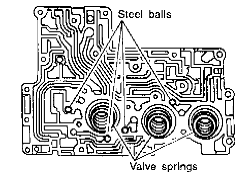 1. Install accumulator pistons, valve springs and steel balls to upper valve body.