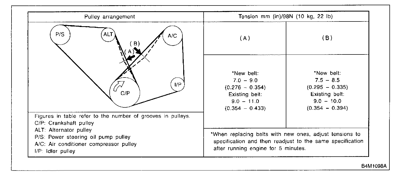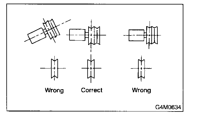 6. Check drive belt tension and adjust it if necessary by changing alternator position and/or idler pulley position.